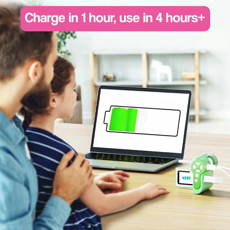 With regular use, expect several hours of continuous exploration time. The USB-C charging cable makes it easy to recharge anywhere - car, computer, or wall adapter.